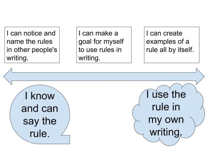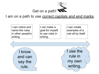 This image is now something I can reference with almost any conventional rule in writing. I can easily modify the statement I associate with this image and help support students to identify where they are on the path as well as what to do to reach their goals.