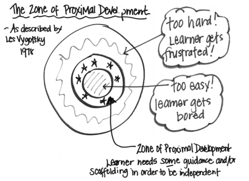 Many aspects of writing can be challenging work. Modeling tools that allow writers to enter these challenges are key to creating scaffolds that can later fall away. As we ease in and out of guided support, writers are able to sit within what Lev Vygotsky refers to as their Zone of Proximal Development (ZPD) in his work from the late seventies. Melanie Meehan references these same ideas in her book Every Child Can Write (Corwin Publishers) and visually explains it in this image below from page 56.