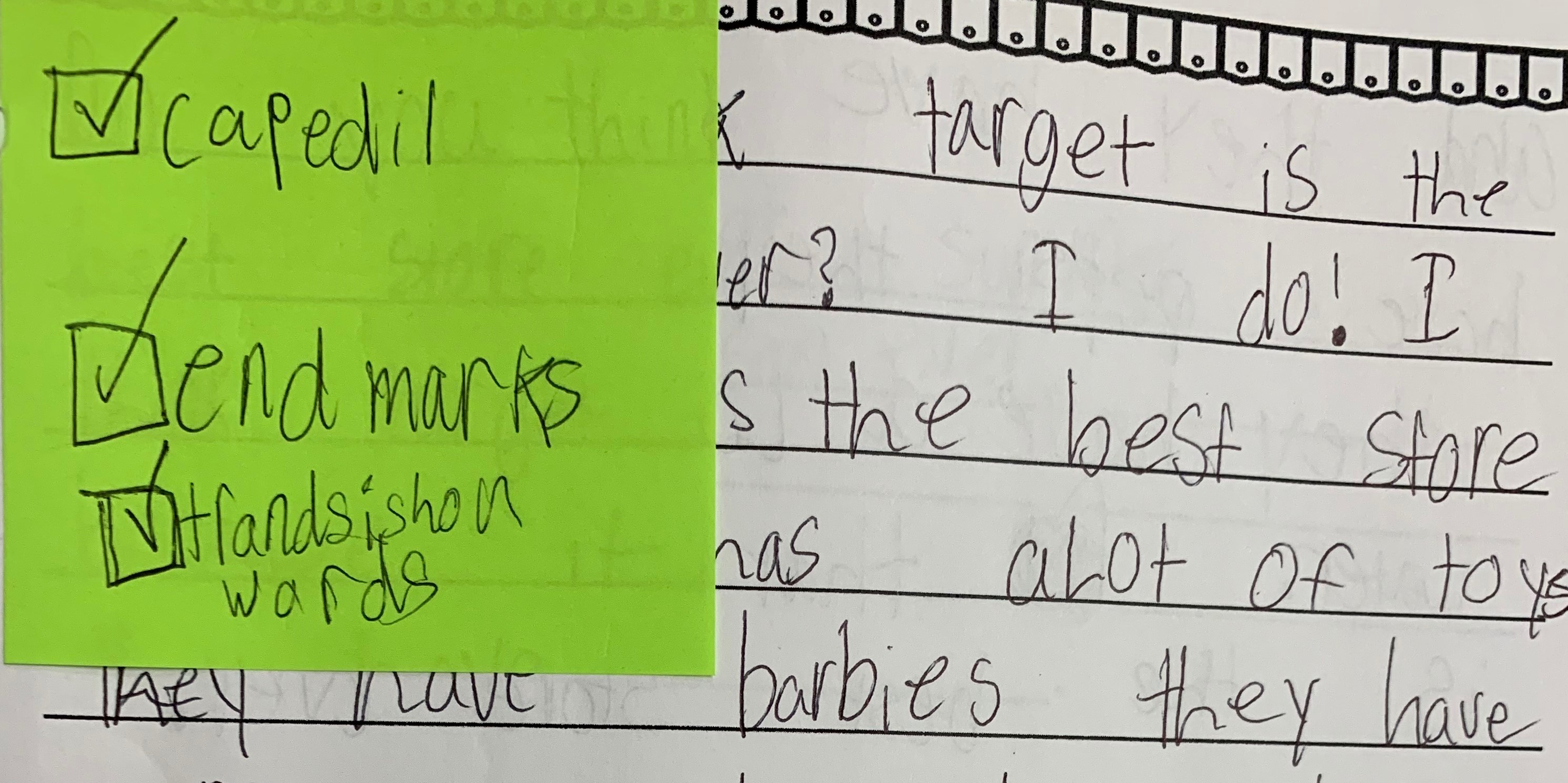 Whenever we can keep checklists open to possibilities with words like almost or working on it, we create openings for resilience and goal-setting to grow. A checklist enables the writer to zoom in on one area in particular and check for progress.