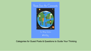 At Two Writing Teachers, we are always looking to invite voices that reflect the society of education in which all of us contribute. We recognize our community is composed of thoughtful and resourceful teachers of writers and invite these perspectives to share in the conversation of writing practices.
