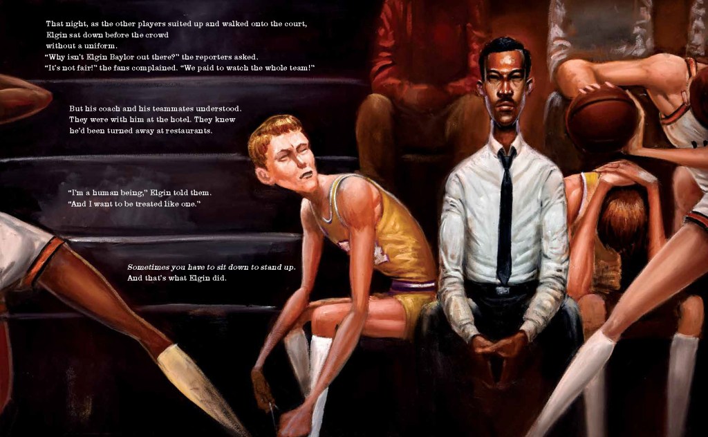 Jen’s newest biography, Above the Rim: How Elgin Baylor Changed Basketball, which is illustrated by Frank Morrison, is about someone whose name Elgin Baylor who is an underrecognized athlete who stood spoke out about racial injustice by sitting in.