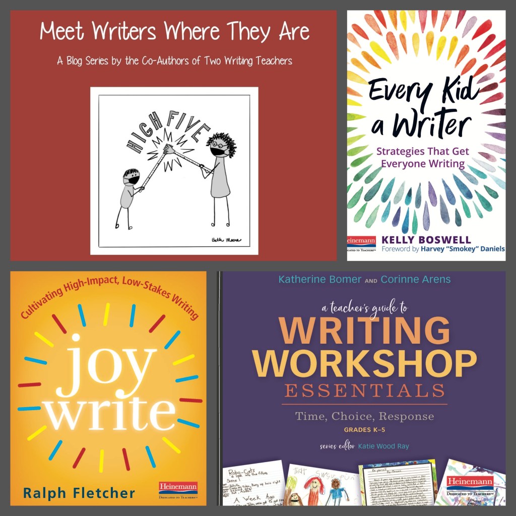- This giveaway is for a copy of ONE of the following books (winner’s choice): A Teacher’s Guide to Writing Workshop Essentials: Time, Choice, Response by Katherine Bomer and Corinne Arens, Every Kid a Writer: Strategies That Get Every Kid Writing by Kelly Boswell, or Joy Write: Cultivating High-Impact, Low-Stakes Writing by Ralph Fletcher. Thanks to Heinemann for donating one of these to the winner of this giveaway. (You must have a U.S.A. mailing address—Sorry, no FPOs—to win a print copy of the book of your choosing. If you have an international mailing address, then you will receive an electronic copy.)