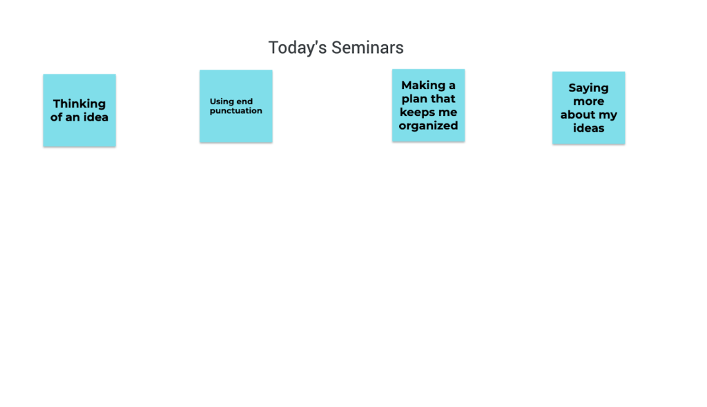 Another favorite way to form small groups is to ask students to sign up for seminars. While I could picture exactly how this could happen in live settings, the virtual world got me thinking. Again, Jamboard is a great opportunity. Here are seminars– sign up for the one you want using the sticky note tool.