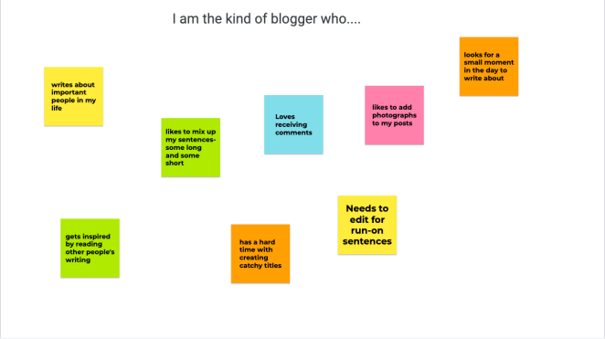 Since we, the educators, have just finished a month-long blogging challenge with the March SOLSC, we have a lot to share about our own writing habits and preferences. We can invite our students to reflect on the kind of writer/blogger they are and add to their list during the month. My students are still on spring break until the middle of next week, but I plan to share this with them when we return. I created it on Jamboard.