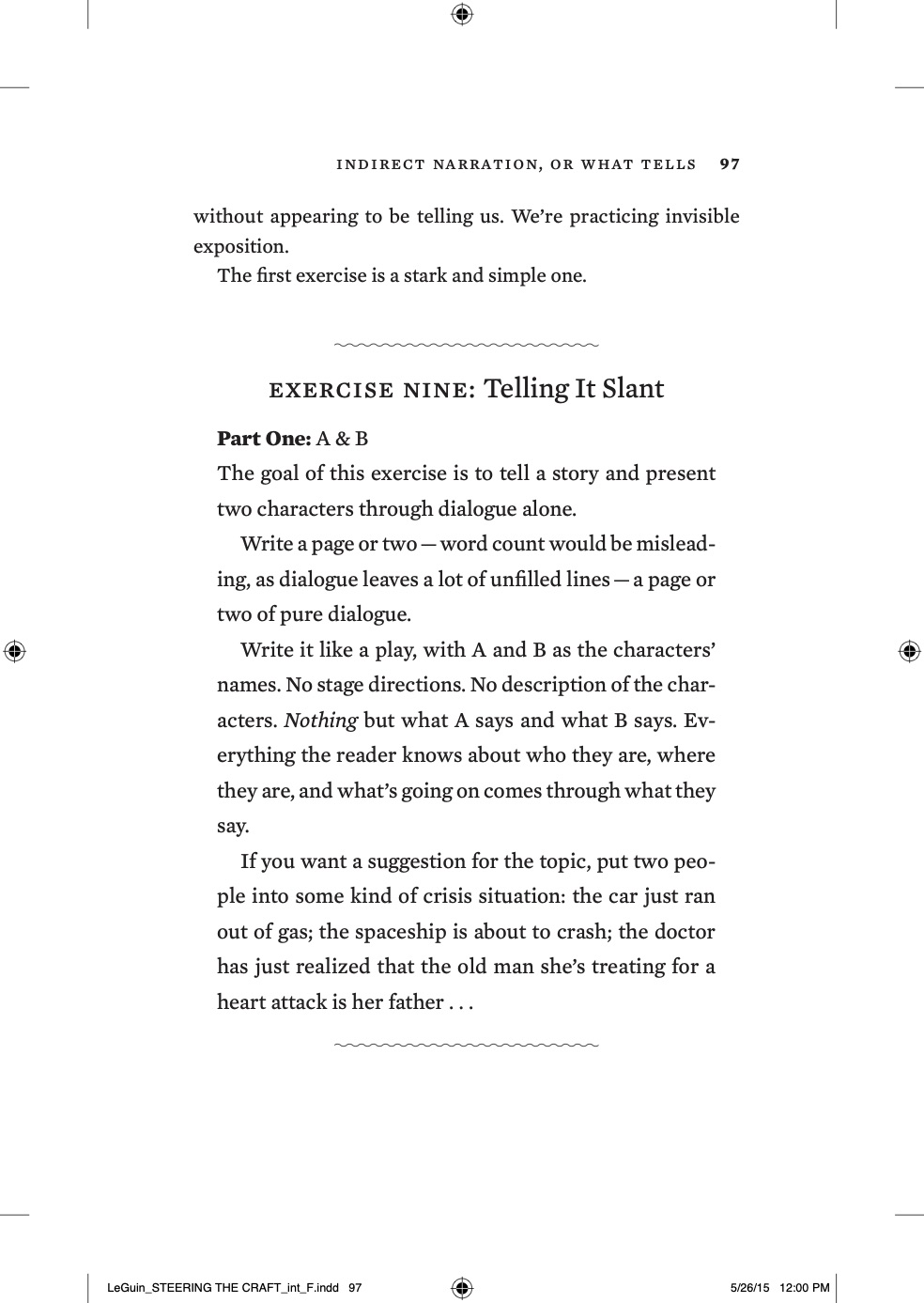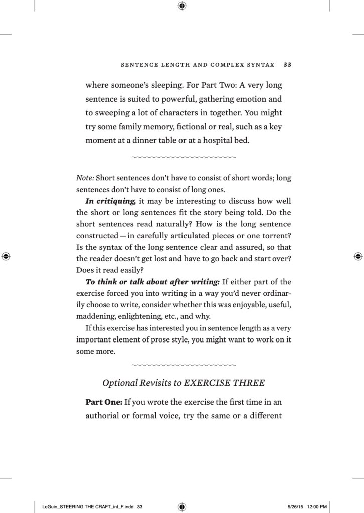 As the book progresses, Le Guin’s instruction and activities get increasingly academic, especially when she delves into forms of narrative structure and point of view. Still, her writing is vivid and precise, so that even those who don’t completely understand the technical underpinnings can give these exercises a try and improve their writing.