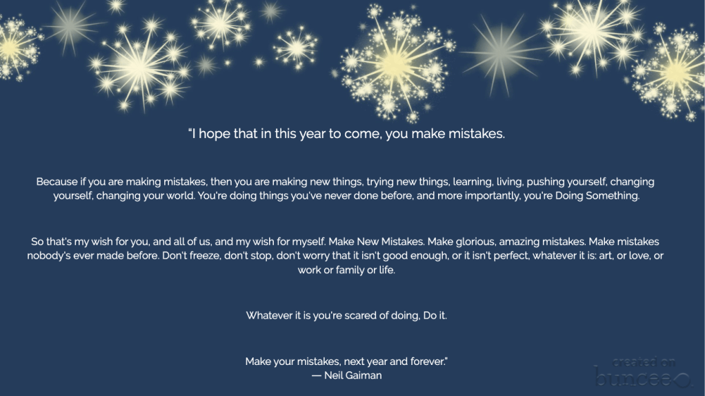 Today’s reminder to make mistakes is powerful – it also carries a message about responding to mistakes others make and praying about how to forgive when they’re heavy hitters…or family….or both.