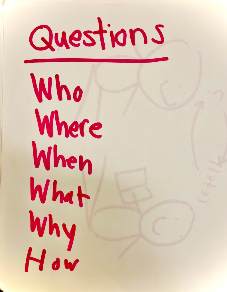 Sometimes I’ll prepare some of the text or a picture ahead of time, and then tape or glue it onto the chart when the moment is right – this save a bit of time so that students don’t get antsy or fidgety while I take my time drawing and writing on the chart. Occasionally, if I do prepare an entire chart ahead of time, I’ll cover up most of it, then uncover bits of it over time as pieces of the chart are introduced to students.