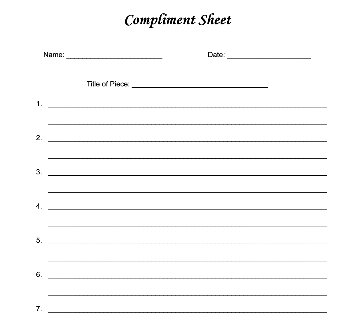 There are several ways to have a mid-unit celebration, but a compliment celebration is one of my favorites. In a third-grade classroom, we challenged students to fix up a favorite piece so that it would be ready for others to read it. Some of the students were working on pieces, but not quite done, and we encouraged them to share just a page or a section. Then, each student left a “Compliment Sheet” on their desk along with the piece or the page they wanted classmates to read. Classmates read pieces, left compliments, and moved to other pieces to continue the process.