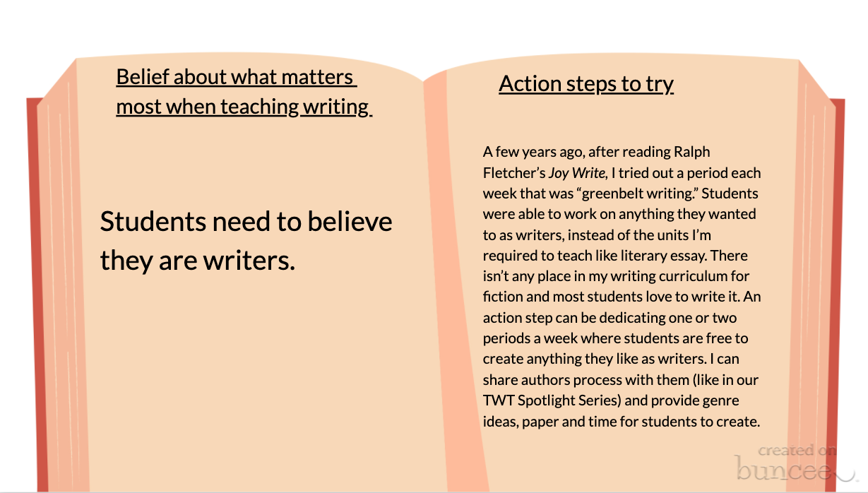 - Students need to believe they are writers.