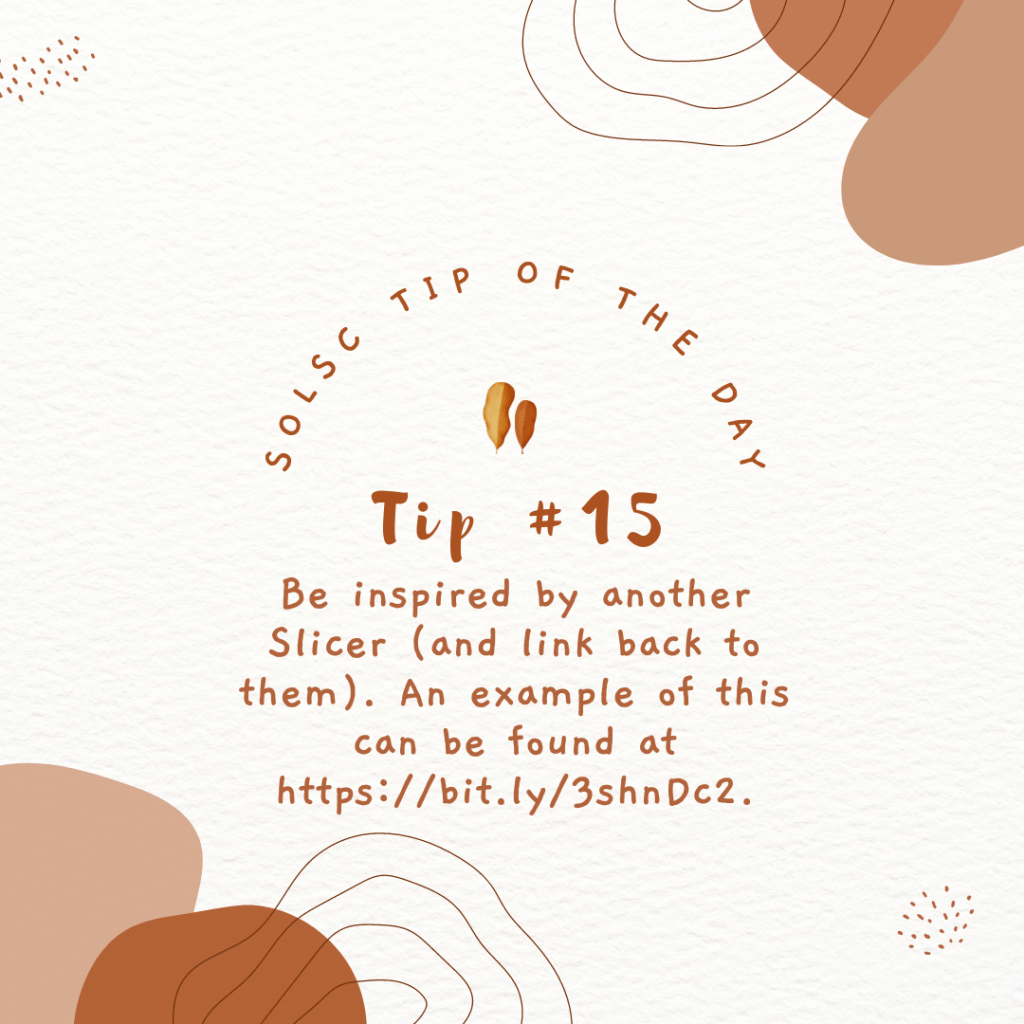 Who has been inspiring you this month? Consider giving them a shout-out on your blog, similar to how we do it here on the call for daily slices.