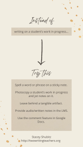 There are other ways to provide support or feedback to students without writing on their work: