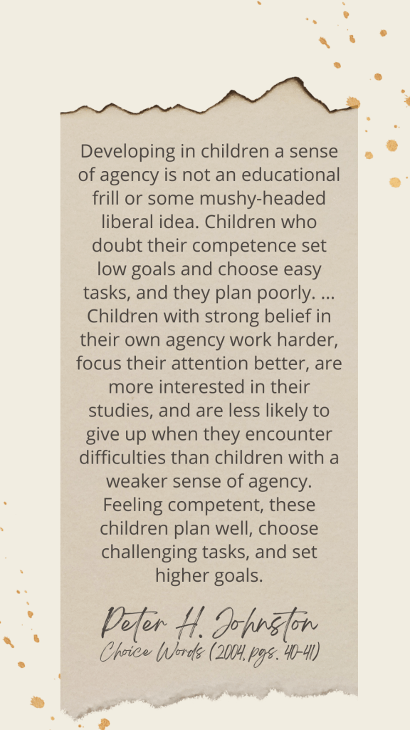 Great post. It not only compromises agency but has the potential to create unnecessary stress for writer. I remember when I was an upper elementary student (a long time ago) that I found it very stressful when I saw ‘teacher’ writing on my current work.