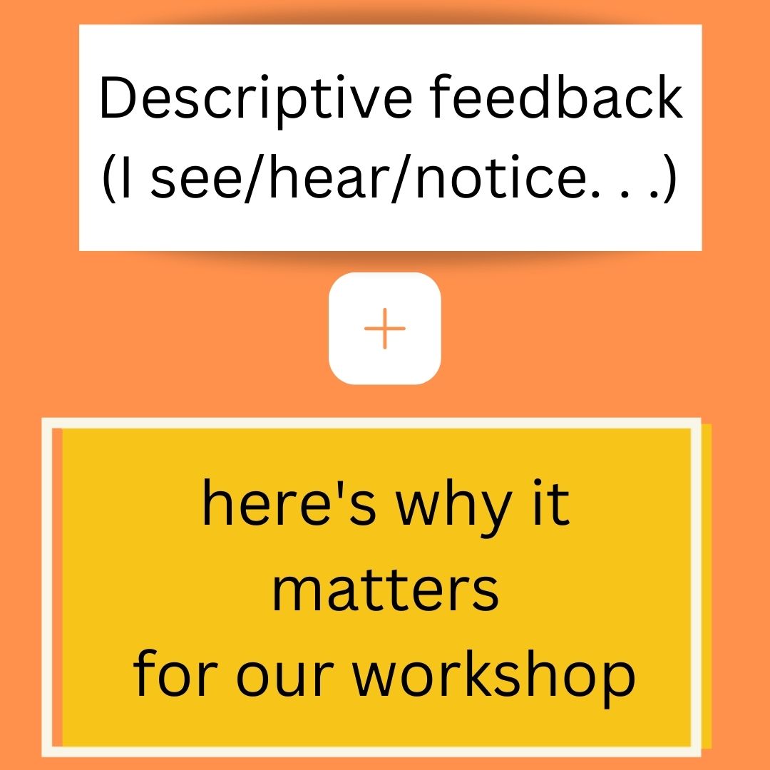 That said, offering the descriptive feedback is step one. I then pair that descriptive feedback with why that noticing—whatever it is—matters in the context of the workshop we are trying to create together. This is a strategy I learned from Samantha Bennett in crafting coaching notes. In that context, when offering feedback to teachers, it’s descriptive feedback + why it matters for student learning.