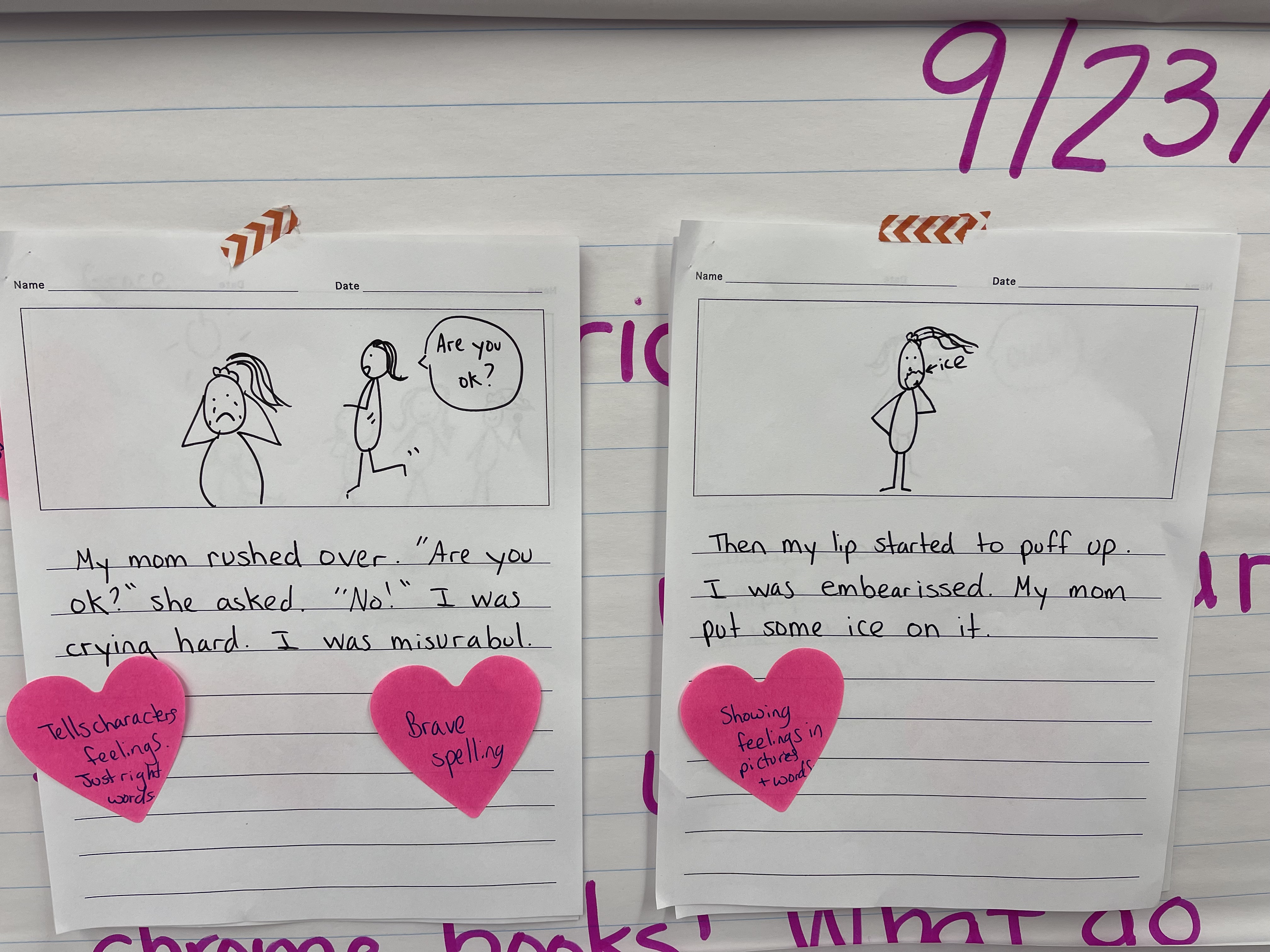 Teaching into what it means to be a writing partner goes a long way toward fostering the kind of community that supports each other, works together, and truly sees one another. To start this school year, many of the classrooms I am working with are focusing on being able to see and name specific work that their partners are doing well. We’ve slowed down the work of partners and been explicit in naming and teaching into the kinds of things partners can help each other with. When it comes to partnerships, the possibilities are endless- giving partners tips, working through hard parts together, and most importantly helping students to see how their work grows stronger with the support of others.