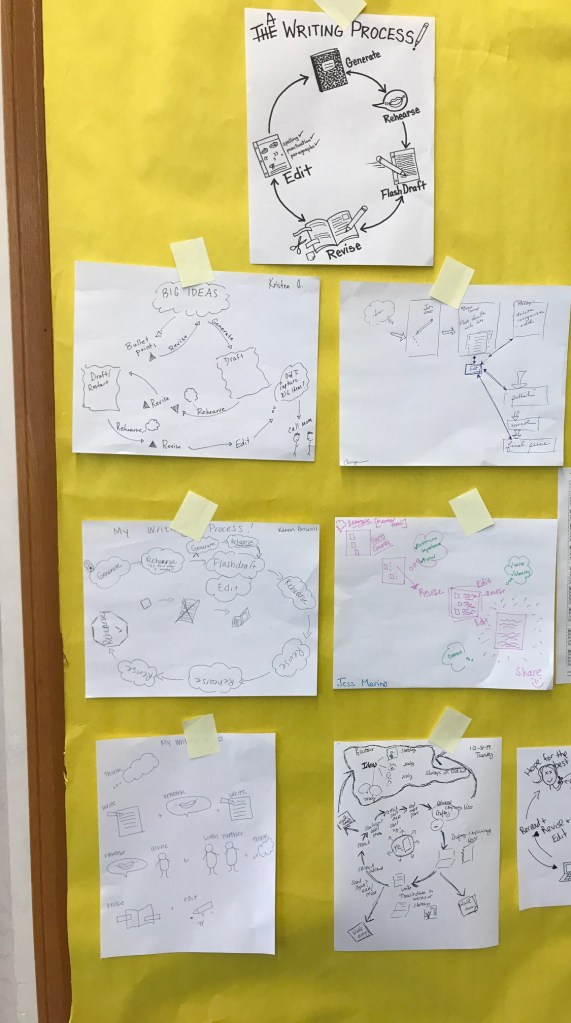 Part of our work as teachers is to help writers to discover what works for them as writers. Everyone’s writing process might look slightly different. For example, orally rehearsing might work well for some students while others might prefer planning on paper. As we foster our writing communities, we can help kids to see one another and highlight how different writing processes might go. There is so much to celebrate as students get to know themselves and others as writers. Here are two really great posts to read more about honoring different writing processes.
