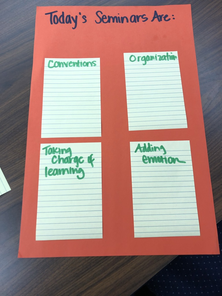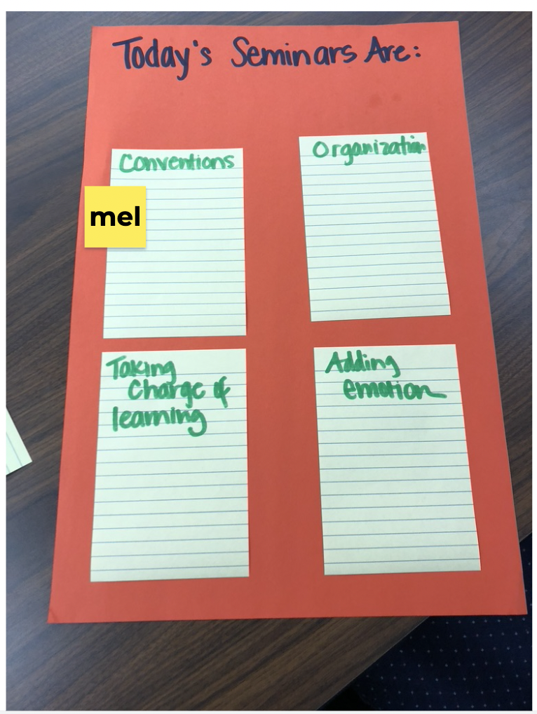 The most flexible invitation I offer students involves signing up through note-sized sticky notes. What I like about this system is that it’s easy to change the seminar offerings. Want a different focus? Simply change the sticky note.