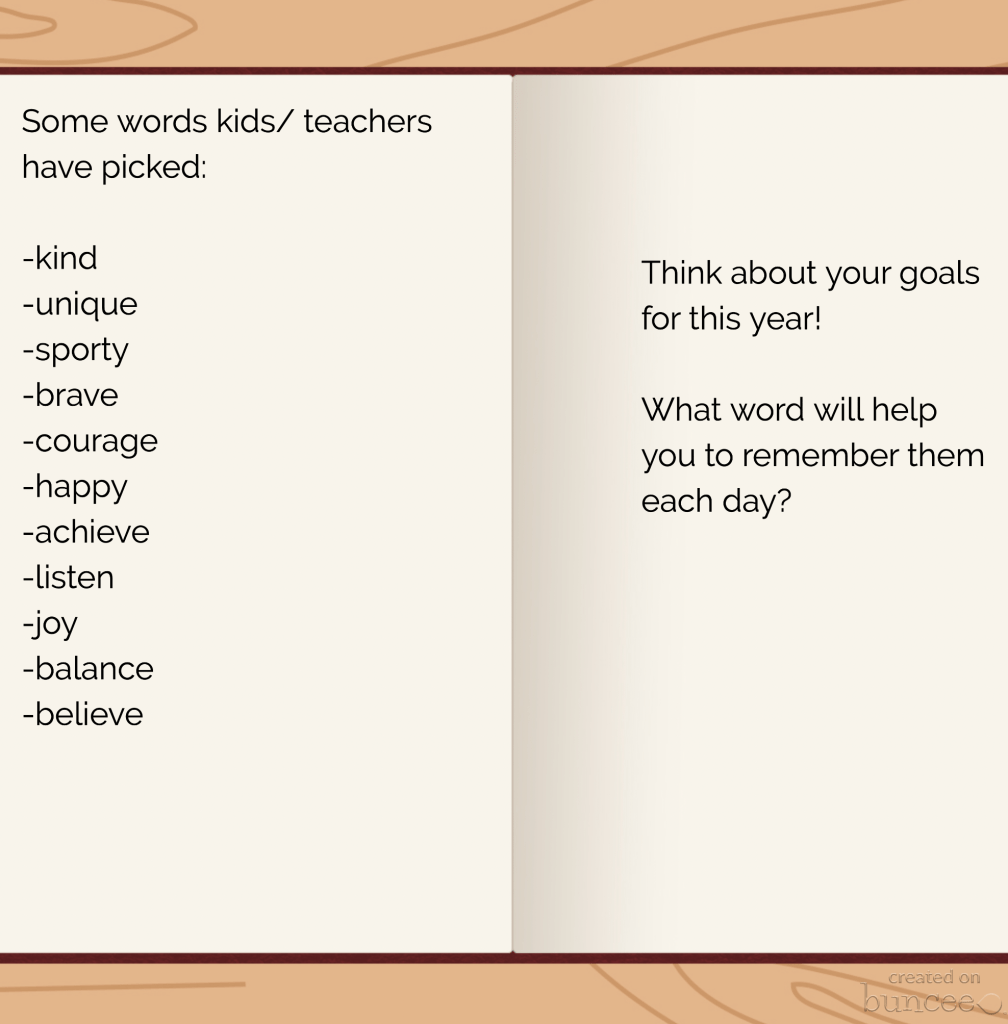 I have chosen a word since 2014 and have had students pick many years also. For the last few years, I have had them choose one at the start of the school year and in January revisit- keep or change. It has been a great end of semester reflection as we write reports.