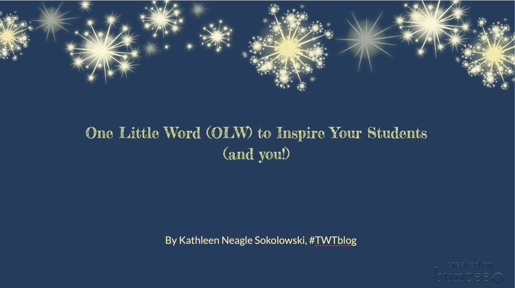 These are some of the One Little Words I’ve chosen to anchor and inspire the year ahead since I joined TWT in 2015. Each December, I would begin to think about what I needed and wanted in the upcoming year and the word that would help me remember those goals. This post ushers in December and the season of celebrations and reflections. This is the perfect time to think of your own OLW and also to think how you might share this with your students, encouraging them to select their own OLW. With December being a very full and busy month, you can take a little time now to plan for your OLW lessons when you return to school in January and a new calendar year beckons.