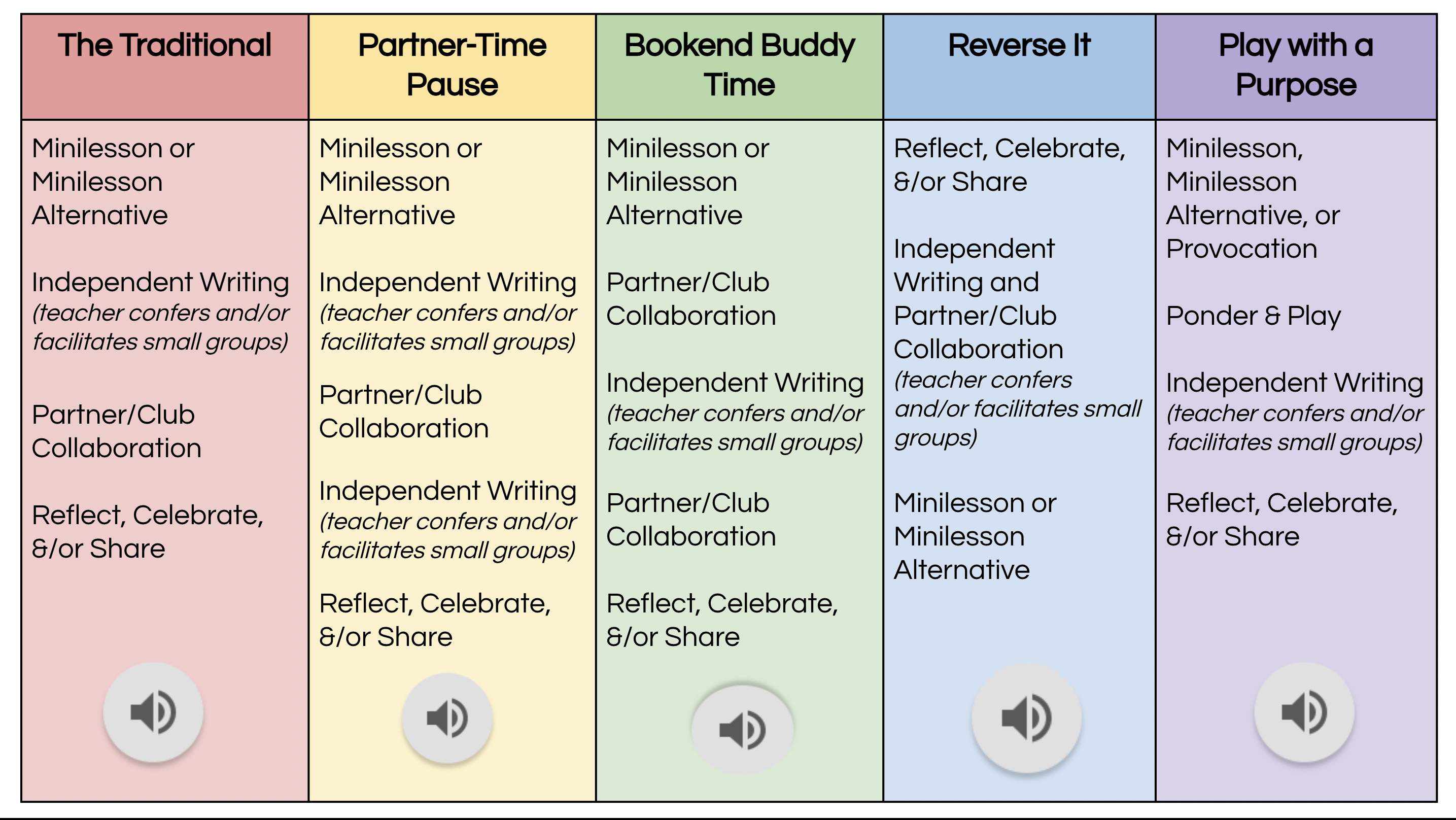 While January is notorious for the need to reboot all kinds of classroom routines, these blips can happen at any point in the year. If you have also experienced “workshop clunkiness,” take heart. Remember that writing workshop is not about playing someone else’s setlist. Workshop is a flexible set of practices that are meant to be improvised. Because of this, there are opportunities within each challenge. In fact, the structure of workshop is one more way teachers can customize learning for those currently in the room. You already actively differentiate many aspects of writing (paper choice, goals, strategies, tools, etc). You can also make intentional decisions about how to use the building blocks of workshop. Stack (and re-stack) them in a way that honors where students currently are and prepares learners for confident risk-taking and continuous growth.