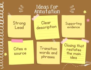 Just as teachers can use anchor papers to support our assessment, students can also use them for self-assessment. By providing an annotated anchor paper–and teaching each annotated skill along the way–students may choose to use the anchor paper as another variation of a writer’s checklist. It will provide concrete examples of expectations and support students in unpacking and understanding the components of strong writing.