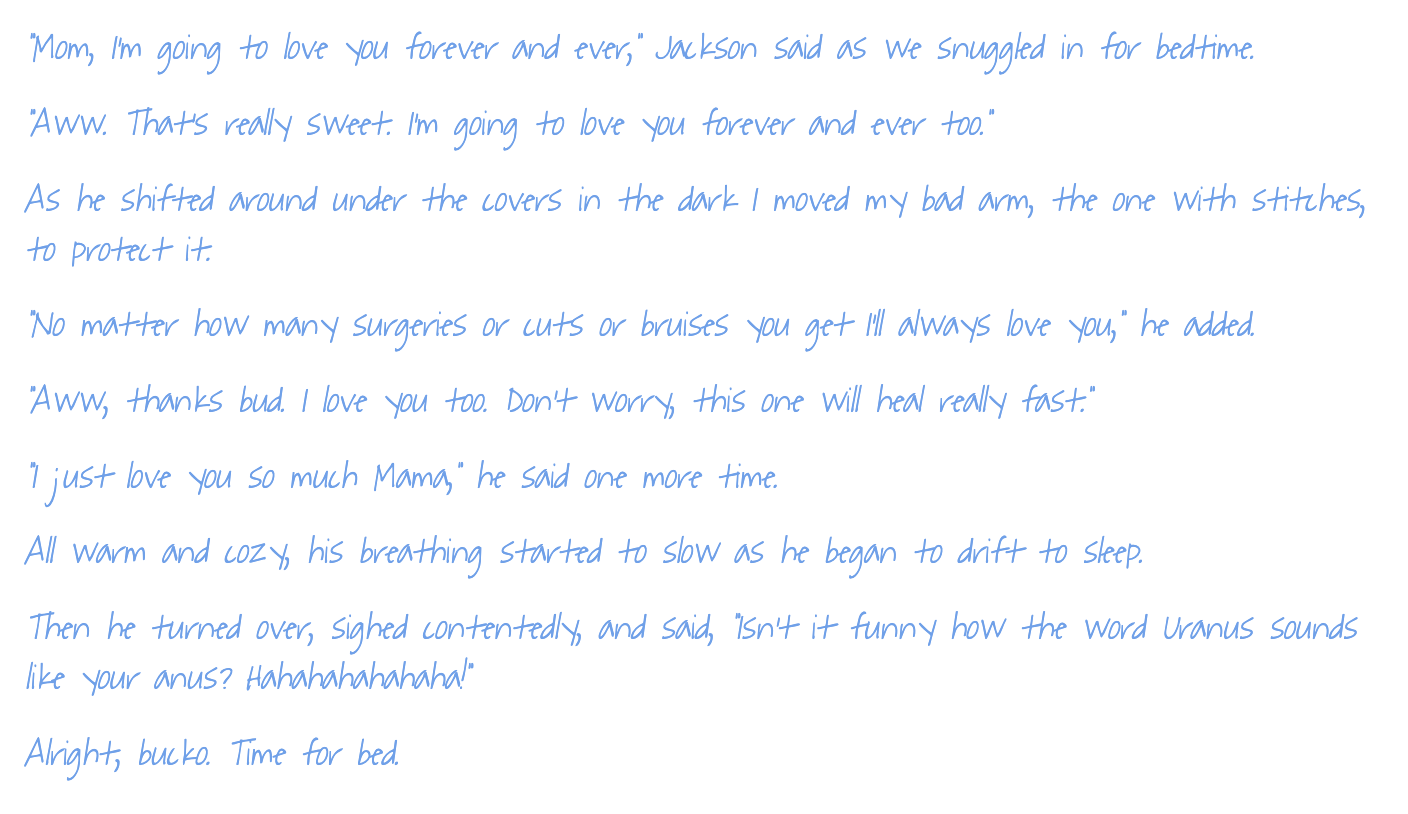 I’ve shared this short video in previous blog posts, and I’m sharing it again now – it’s packed with kid-friendly tips for writing comedy.