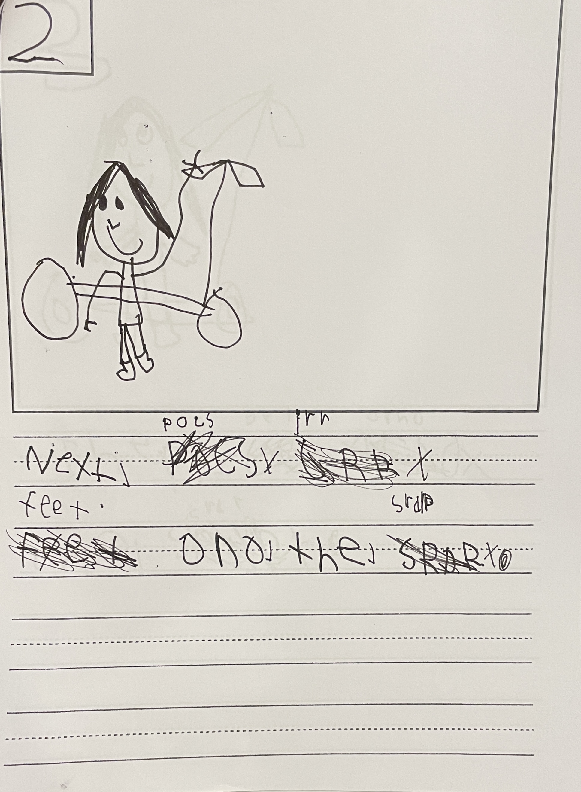 When I look at student work, I first do so through the lens of an artist. What does that mean? It means that I leave behind my preconceived ‘Kindergarten Teacher’ notions of what good writing is or what it looks like. I start to notice and wonder. I sit with the work. I attempt to decipher it. I ask questions. I let the work breathe.