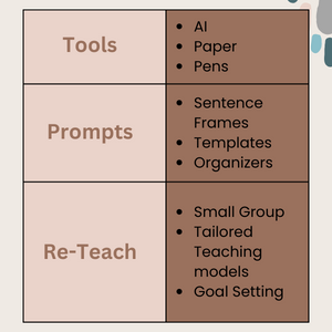 Sentence stems, word lists, models, or fill-in-the-blank paragraph prompts can spark ideas and allow students to set achievable goals based on their specific needs.
