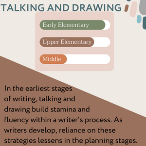 Stamina, in most contexts, is associated with strength. In writing, stamina reveals itself when writers have staying power, and so much goes into developing fluent, sustained writing. After teaching many different ages, I have relied on talking, drawing, and planning to be a way to build toward writing stamina. Each of these skills holds importance in a writing workshop, but the amount of time dedicated to these practices evolves as a writer’s stamina grows.