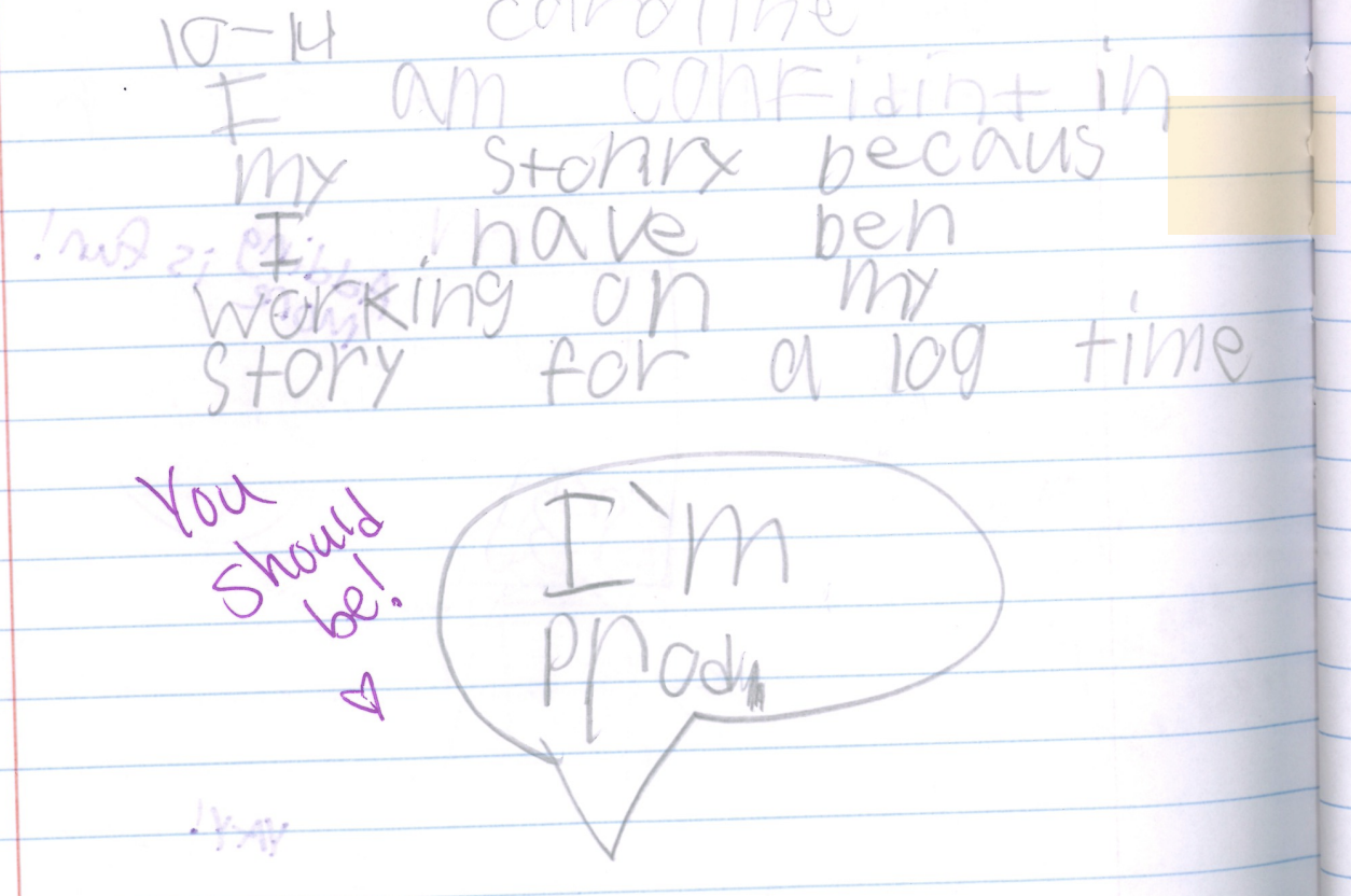 Each page showcases the challenges, successes, craft, and stamina of these second grade writers. As you can see, I read and respond to each student’s reflections.