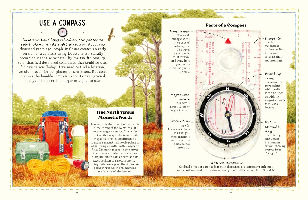 Book Details: This illustrated, step-by-step guide to classic skills kids should know. The authors take readers on a journey back in time, unlocking hours of fun with skills such as knot-tying, pie making, campfire building, compass usage, hand sewing, tomato growing, and more. Each chapter presents clear instructions and shares intriguing historical facts about the skills. This book is a well-suited mentor text for kids who enjoy procedural and how-to writing.