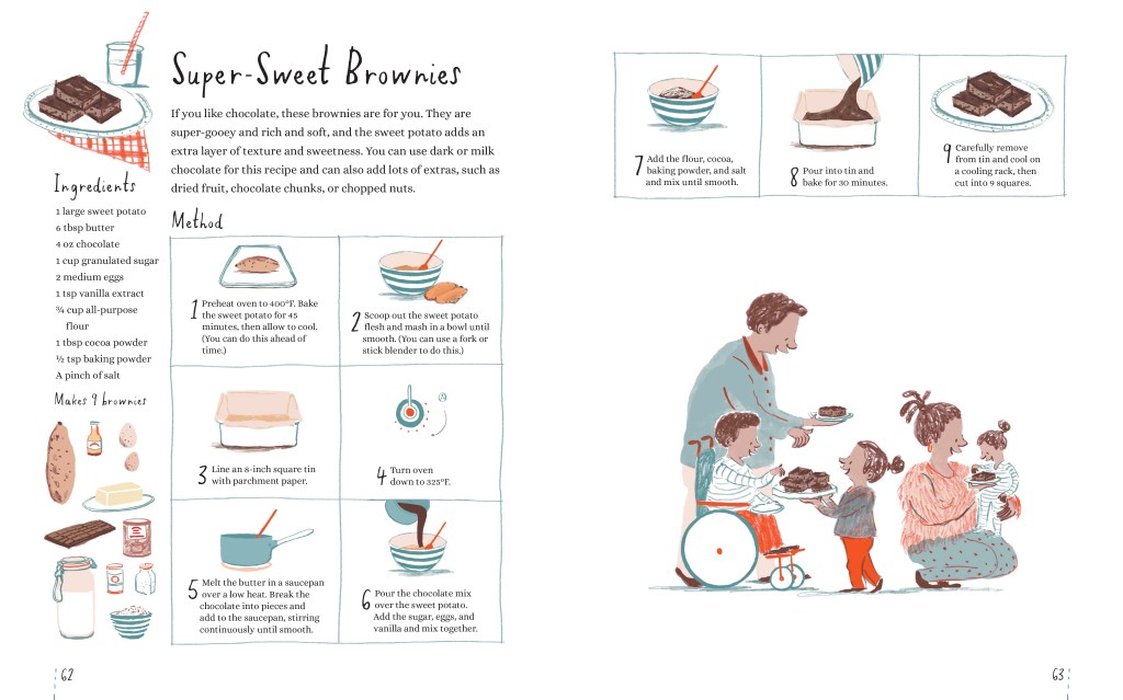 Bake, Make, & Learn to Cook Fun & Healthy Recipes for Young Cooks by David Atherton and illustrated by Rachel Stubbs (Candlewick Press, 2020)