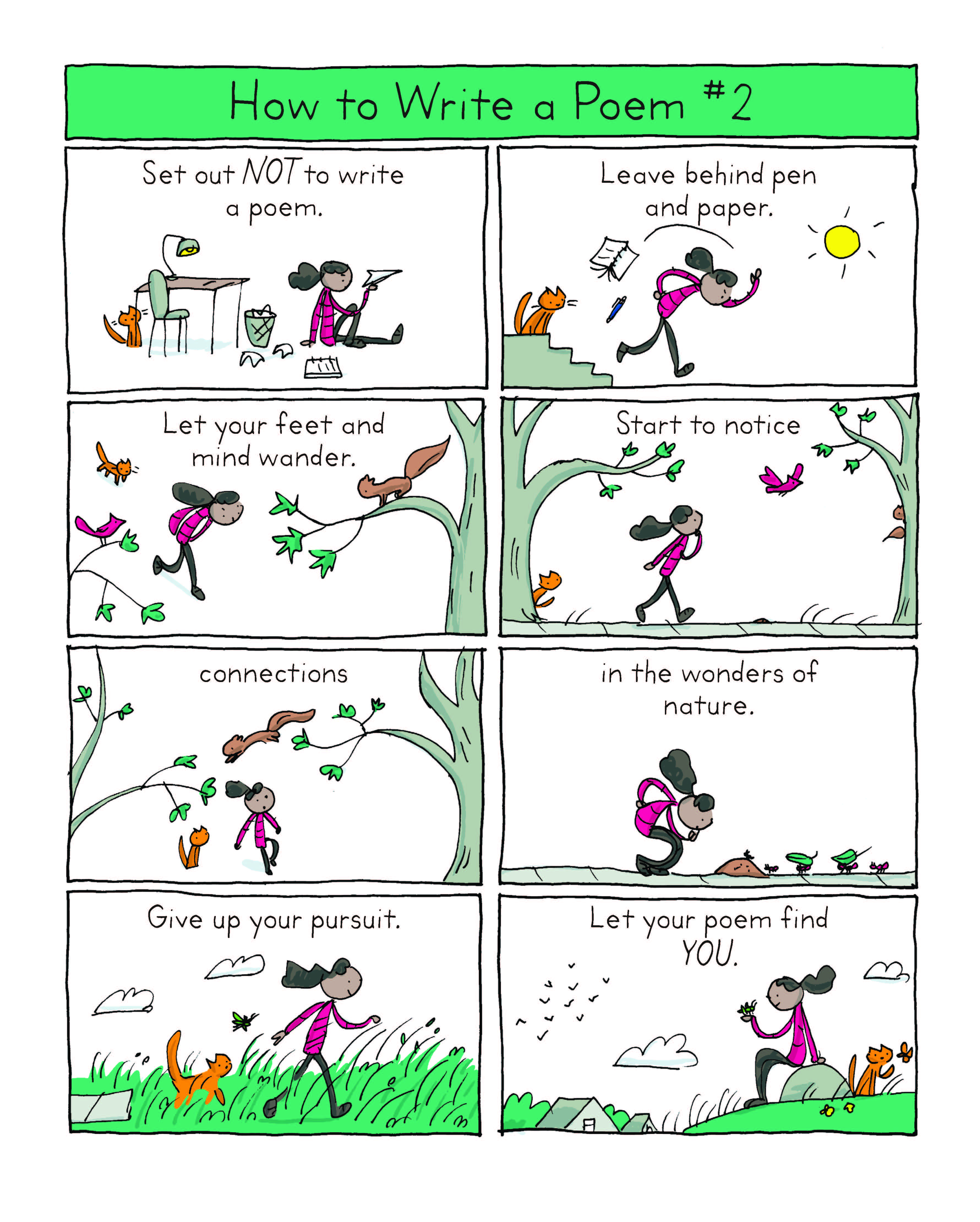 11. Each of these books is new to me and each of them sounds absolutely fabulous, Stacey. I think they would be fun summer reading, inspiring lots of great writing and drawing. How I love that cartoon of how to write a poem – so true!