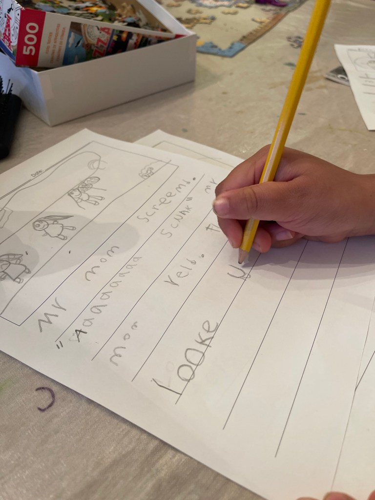 Every time I get ready to share a post here on Two Writing Teachers, I always ask my writing partner Dawn, “is this worth writing about?” I have questioned the importance of writing lines and whether this work matters for others or is this just something our school is grappling with. I didn’t have to look any further than my own first-grade daughter, Rose. We recently did some writing at home; you can read more about that here. As we wrote, I quickly found myself layering in work to help her use her writing lines. This confirmed that this work matters in more places than just our school.