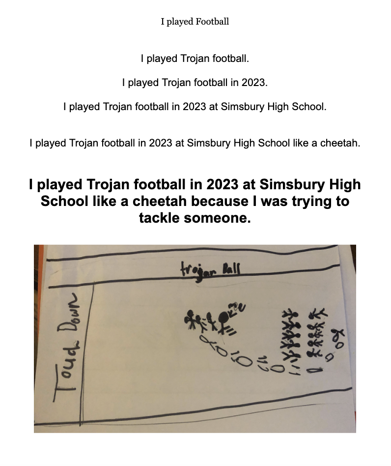 Pictures are fabulous springboards for sentence building. I start by providing students with a picture that show someone or something doing something. When I am working individually with a student, I try to make the picture as responsive to events and interests in their lives as I can. When I am working with a larger group of students, I work to appeal to the masses. Regardless of the audience, I lean into a series of questions that their sentence has to answer:
