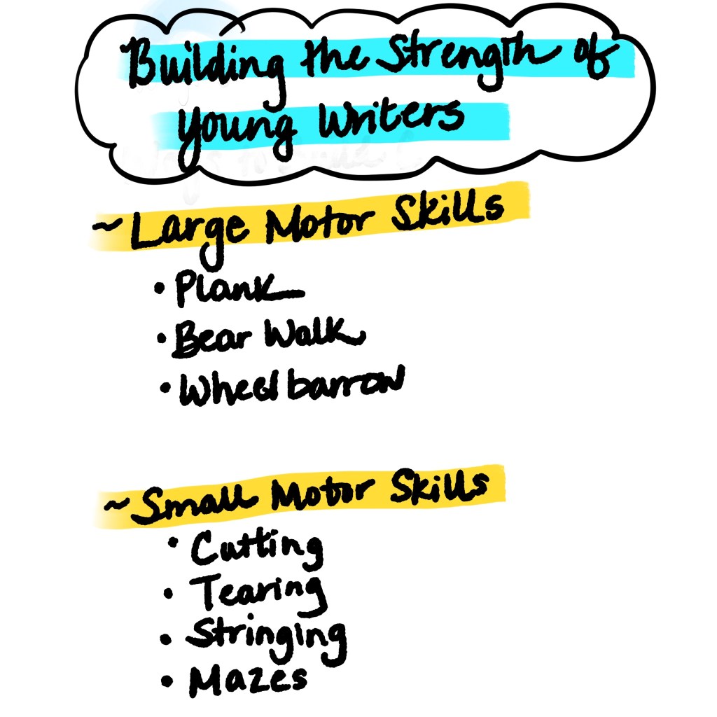 Over the last several months, I have been working on a book about the foundational skills of writing. While I have appreciated the complexity of writing for as long as I can remember, I’m not sure I’ve considered and the importance of motor skills enough, nurturing a practice of assessing both small and large motor strength development of emerging writers.