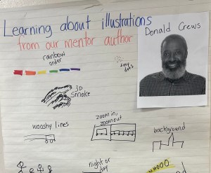The biggest piece of advice I have is to start by highlighting mentor illustrators, rather than authors. It’s a more accessible entry point for kids if you pay attention to the illustrations and encourage them to try something in their drawings. This is fun and accessible for mentor-novices of all ages. I begin each school year studying Donald Crews’ illustrations in Freight Train, a book with minimal text. This year, we studied the impact of what we named “whooshy lines” to show that something is moving quickly. Students enjoyed adding “whooshy lines” to their work, regardless of genre.