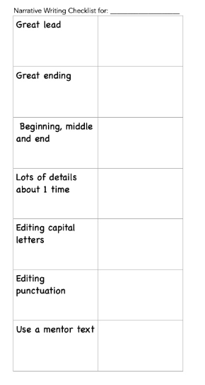 • Checklists are excellent accountability tools. When I offer students a writing checklist, I include something about mentor texts. This prompts students who haven’t tried a mentor move to check our anchor chart and revise so they can check it off of their checklist.
