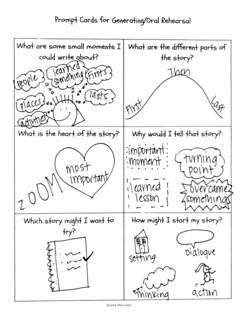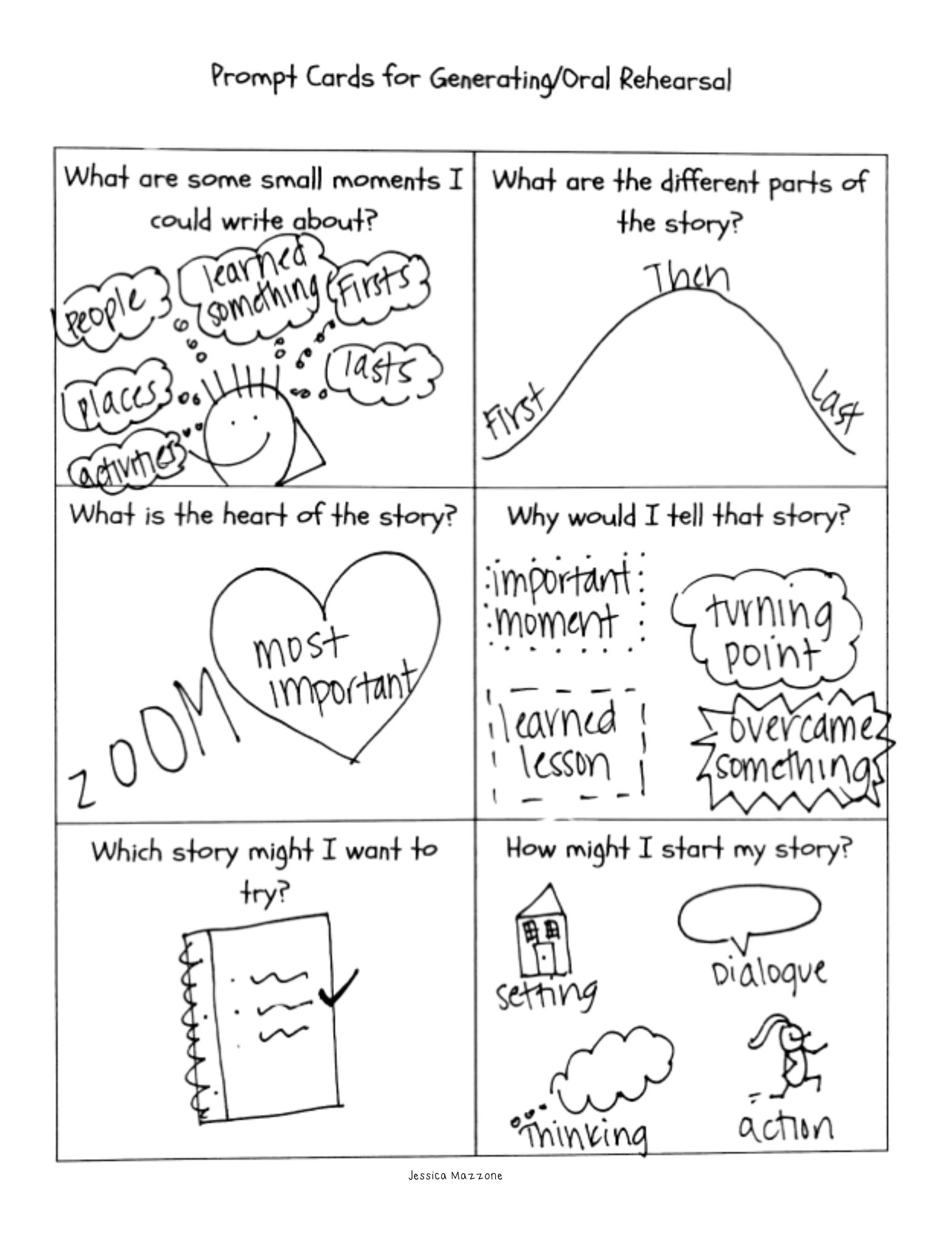 During oral rehearsal, writers get the opportunity to “draft” a piece out loud, or write it in the air. For those who have difficulty with writing production or are reluctant to revise, this is a great way to try something out without the commitment on paper. You might coach writers to: