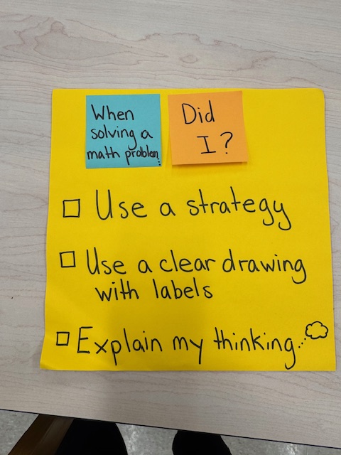 As students worked independently on a new problem, Jess and I moved around the room, conferring with them. It felt just like conferring during writing workshop. We used the checklist and the shared chart to guide our feedback.