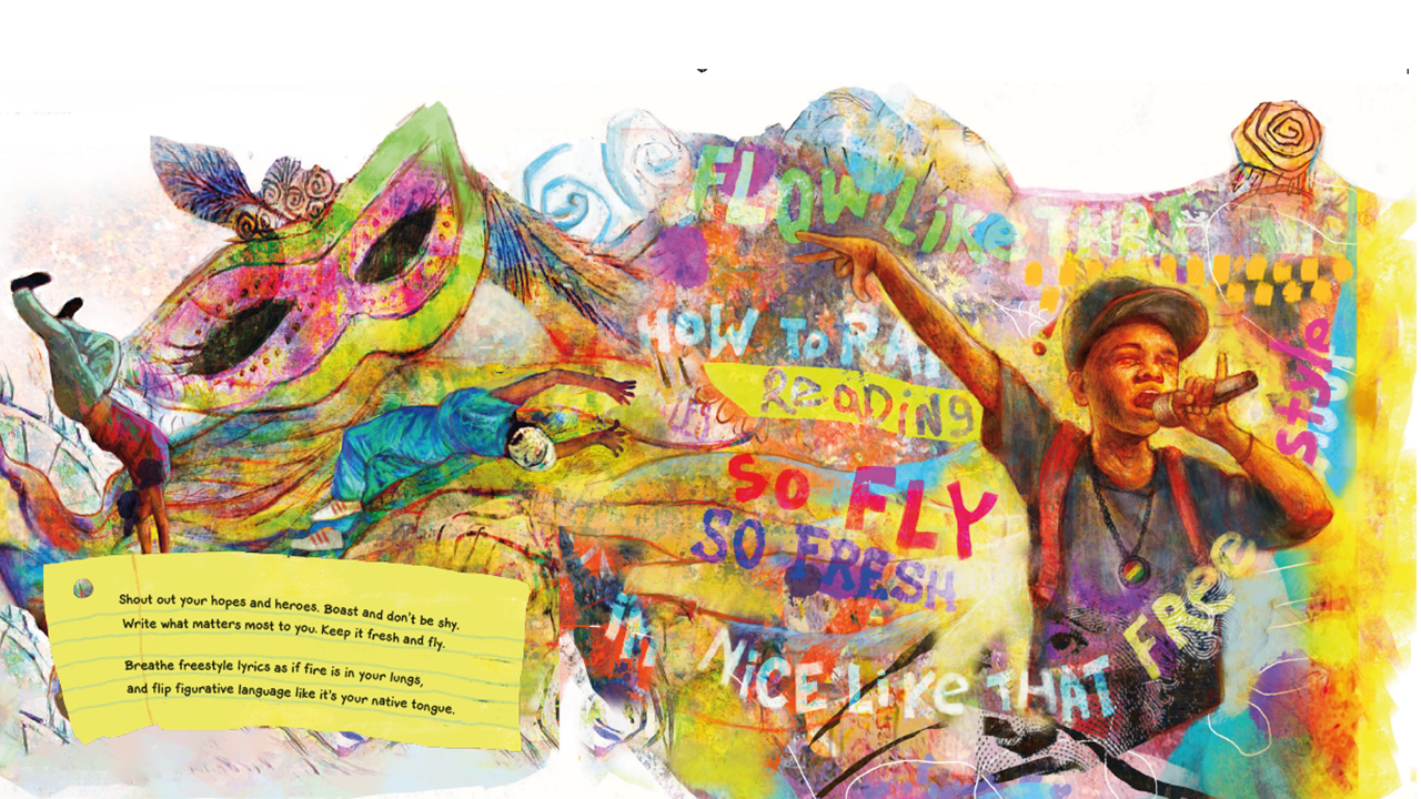 Rap It Up!—which Jeffery and I co-authored—is a spin-off of Jeffery’s popular workshops. The how-to-book does not aim to turn kids into rappers but rather to empower them as writers and public speakers. Tailor-made for the classroom, the book implores young readers:
