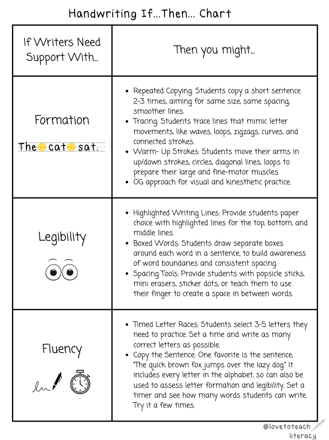 See the “Handwriting If…Then… Chart” below for instructional ideas.