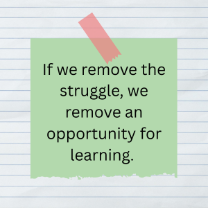 Of course, not all struggle is productive. There’s a point where a student moves from thinking to frustration. In these moments, the work stops and may lead to shutting down. The challenge isn’t deciding whether to help, it’s recognizing when to help. Then, how quickly and how much!