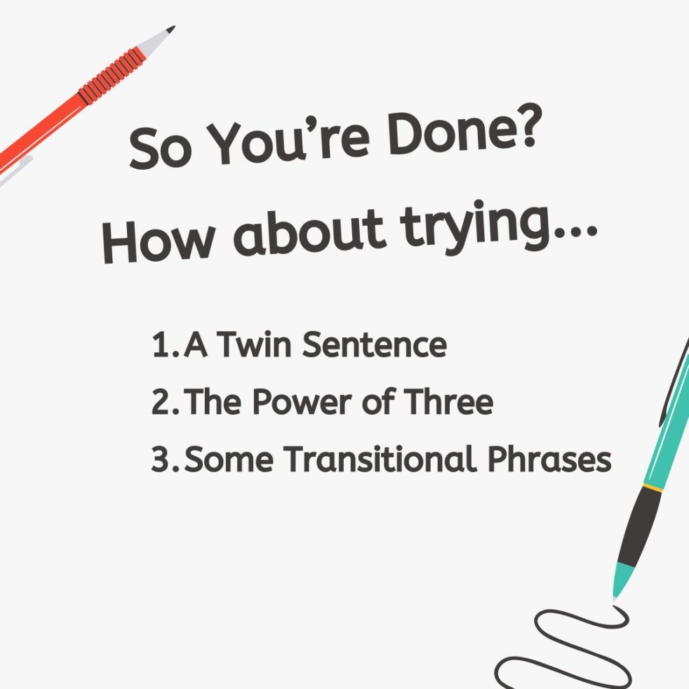 Sometimes, it's nice to have a few strategies on hand to combat the pervasive I'm done syndrome that shows up in writing classrooms.
