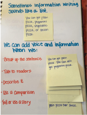 Sometimes information writing sounds like a list--teach students strategies to add voice and elaboration as they teach readers.