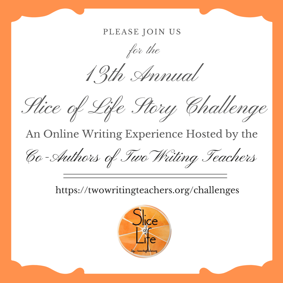 It's the second day of our 31-day writing challenge. Join us by writing your slice of life story, sharing the link to it in the comments section, and giving comments to at least three other Slicers.