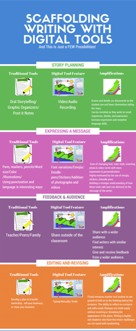 When writing with digital tools, students have the opportunity to design and share writing in a variety of ways that not only add a new aesthetic to writing but more importantly they offer teachers the ability to skillfully and intentionally scaffold writing development.