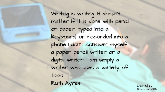As I sat down to write my post for the upcoming series, titled: Dreaming Big for This Year’s Writing Workshop I thought back to when I opened my writing workshop to digital tools. I thought of all the things I wished I had known. I quickly learned technology was about more than devices, apps, and… Continue reading Infusing Technology: It’s More Than Apps and Devices