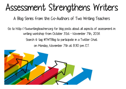 Over the next seven days, my friends and I here at Two Writing Teachers will share important concepts around assessment in writing workshops. We have all given a lot of thought to our best practices when it comes to using assessments to strengthen student learning. While sometimes assessment seems like an infringement on precious instructional minute,… Continue reading NEW BLOG SERIES: Assessment Strengthens Writers