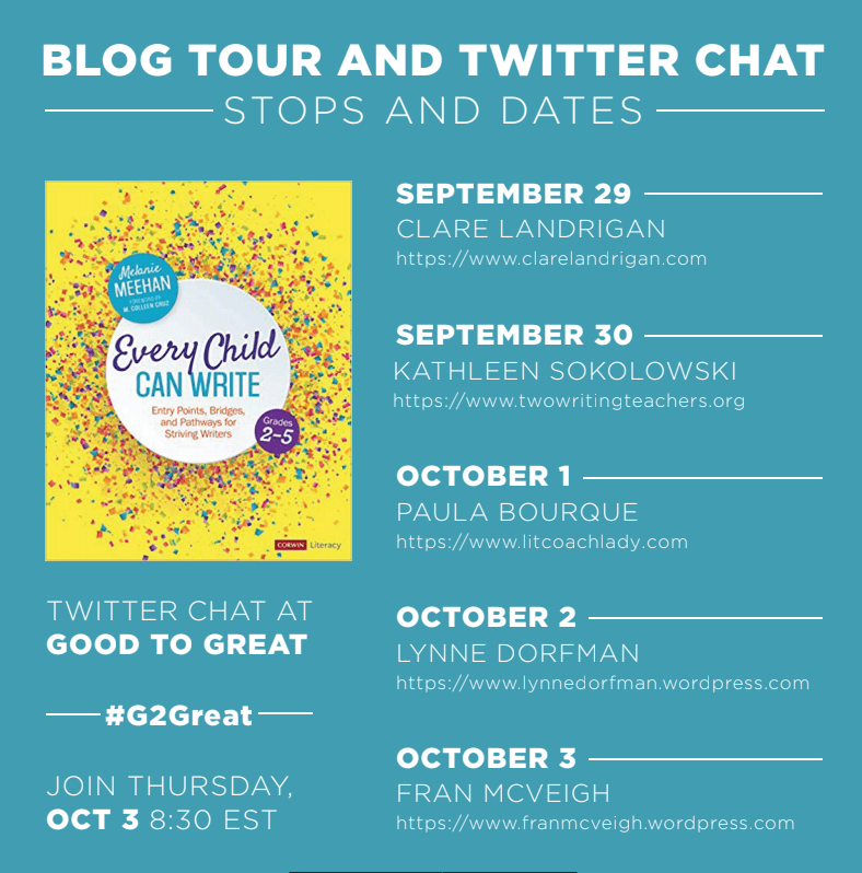 Welcome to the next stop on Melanie Meehan's Every Child Can Write blog tour! Today's focus is on Chapter 8, which has excellent ideas for educators when it comes to teaching striving writers about spelling and conventions. Be sure to comment on this post for a chance to win your own copy of Every Child Can Write! (You are going to want a copy of this book ASAP! It is THAT good!)
