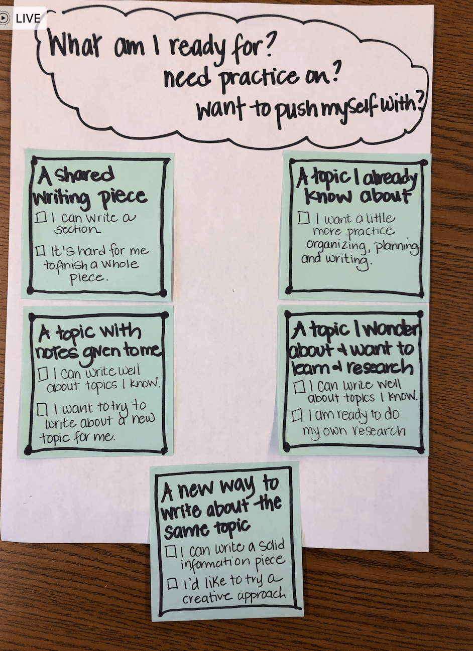 A six to eight-week writing unit may not be the equivalent of running a marathon, although some may beg to differ this year, but it still requires some creativity for strong and energetic finishes. As I work with several teachers who are in the final third of their information writing units across a variety of grades, here are a few ideas for maintaining energy.